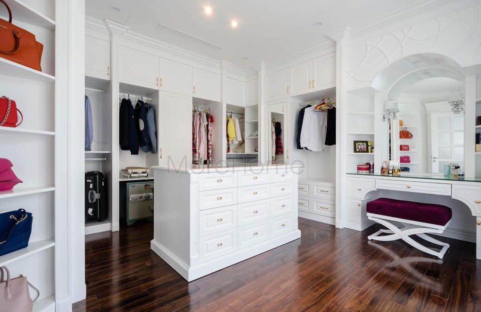 Hệ thống kệ tủ quần áo sang trọng của biệt thự khiến bất cứ ai cũng trầm trồ