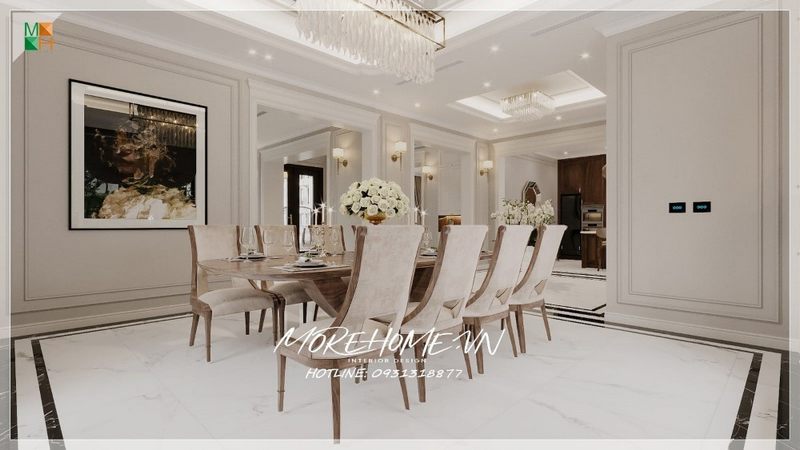 Bộ bàn ăn 8 ghế nội thất đẹp mắt là tâm điểm của căn phòng, bàn ăn hình chữ nhật mẫu thiết kế được lựa chọn nhiều nhất bởi nó thích hợp dành cho phòng ăn có diện tích lớn mà vẫn đảm bảo tính thẩm mỹ.